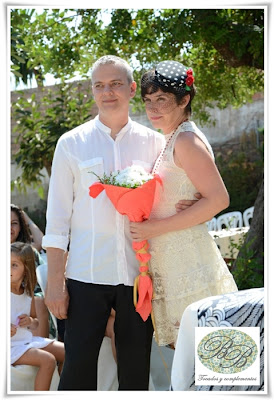 Pilar y su marido en una boda de lo más íntima y original, ella luce un tocado que le regalaron sus amigas, GUAPÍSIMA!!!